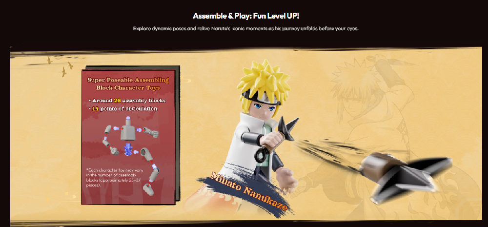 ¡Los ninjas se reúnen y desatan la batalla! La colección Ultimate Bond, con licencia oficial, incluye 9 figuras de personajes. Con entre 27 y 33 piezas, múltiples puntos de articulación y accesorios exclusivos, podrás recrear con facilidad movimientos jutsu dinámicos y poses de combate intensas.