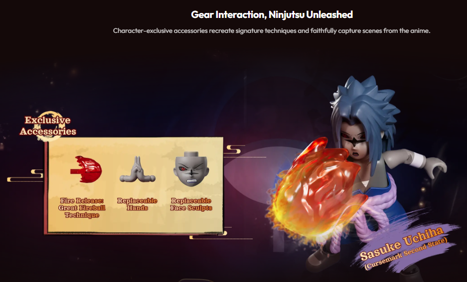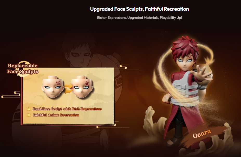 El intrincado esculpido y las expresiones faciales intercambiables dan vida a cada personaje, capturando el espíritu de un verdadero shinobi y mejorando tanto el juego como la exhibición. Una adición imprescindible para fans y coleccionistas.